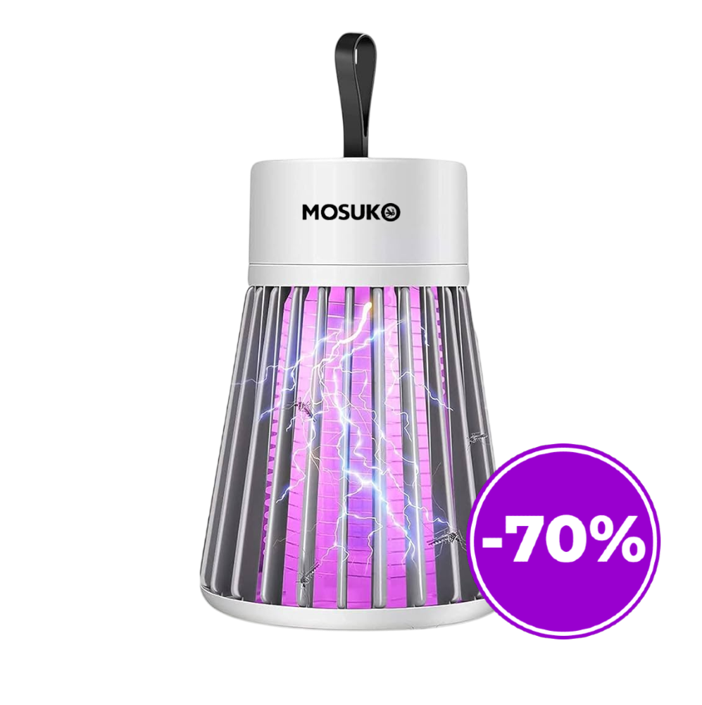 Mosuko przyciąga komary z odległości aż do 20 metrów dzięki intensywnemu światłu UV — i eliminuje je natychmiast po kontakcie. Idealny do sypialni, ogrodu, na balkon czy na kemping.